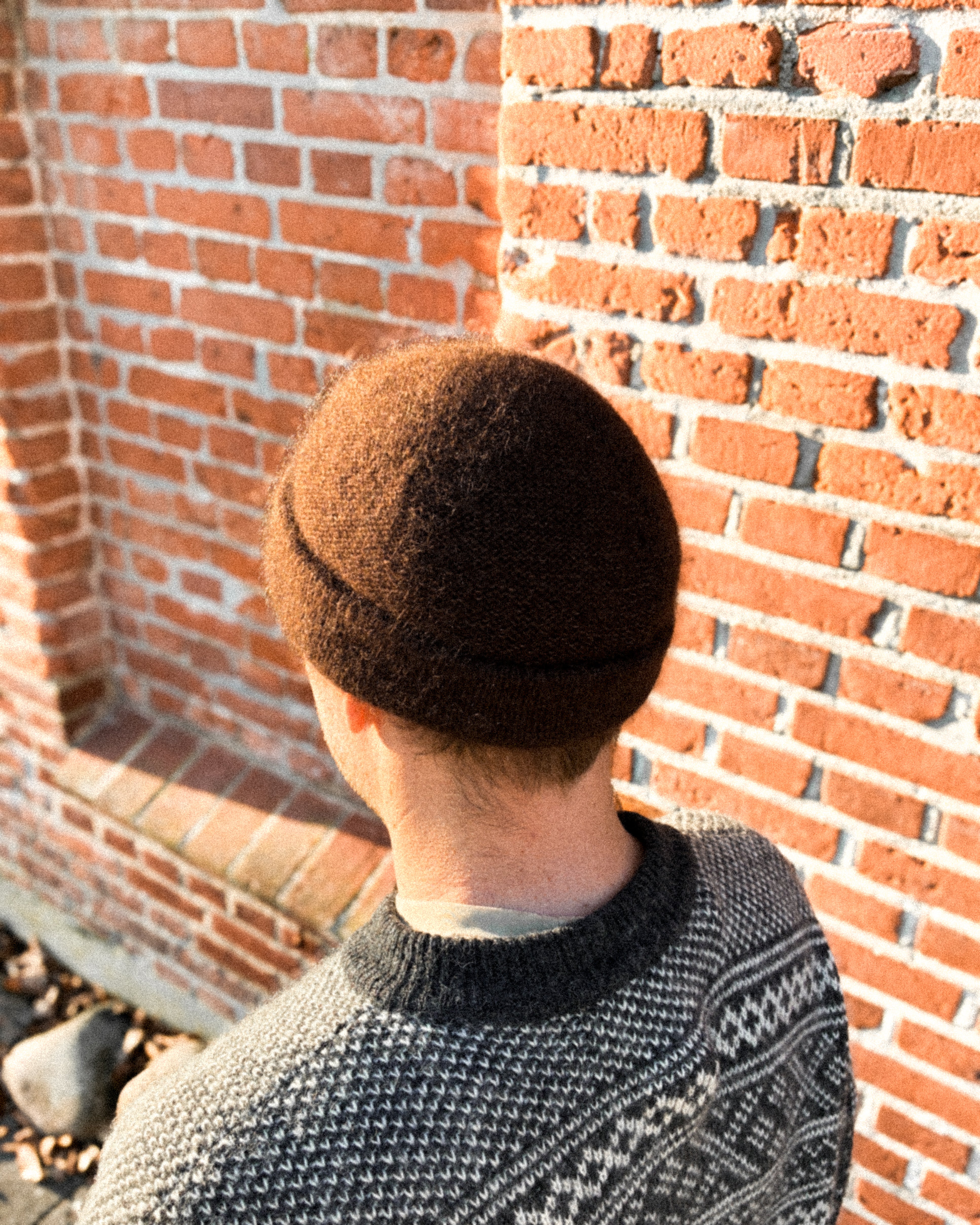 Arbeidsgang: Denne luen strikkes rundt ovenfra og ned i glattstrikk. Luens topp formes av en serie av økninger som strikkes etter diagram, og avslutningsvis strikkes det en dobbeltlaget bunnkant. Når man når til bunnkanten skal arb vendes, sånn at luens vrangside blir til luens forside - dette gjøres ved hjelp av en German Short Rows-vending. Den brettede bunnkanten strikkes deretter rundt i glattstrikk, og felles avslutningsvis av ved hjelp av metoden 3-pinnsavfelling for å gjøre den dobbeltlaget.